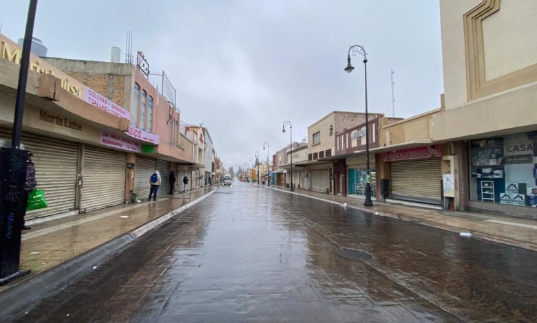 La onda gélida que se vive en la ciudad provocó que los comercios del centro de Saltillo permanecieran cerrados ante la falta de transporte público.