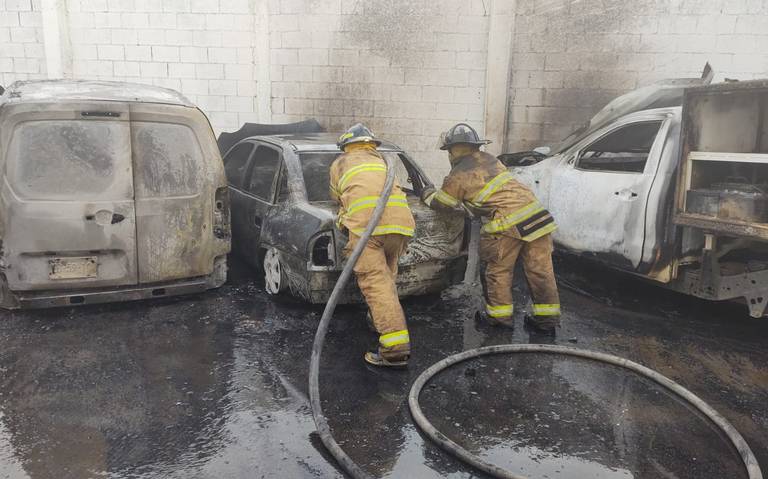 Un total de tres vehículos fueron consumidos por el fuego al registrarse un voraz incendio en el patio de un negocio de acumuladores, siniestro que dejó daños por 800 mil pesos, afortunadamente no se reportan personas lesionadas.